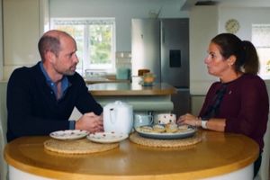 Prince William has fought back tears as he was reunited with a woman who lost her husband to suicide after the death of her young son.